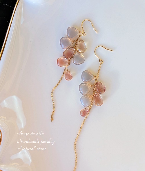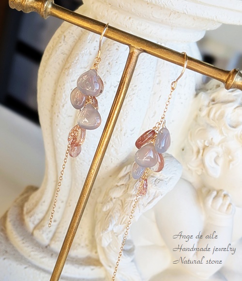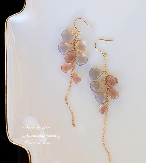 【14kgf】グレーオニキス&アンデシンアシンメトリー ピアス /イヤリング