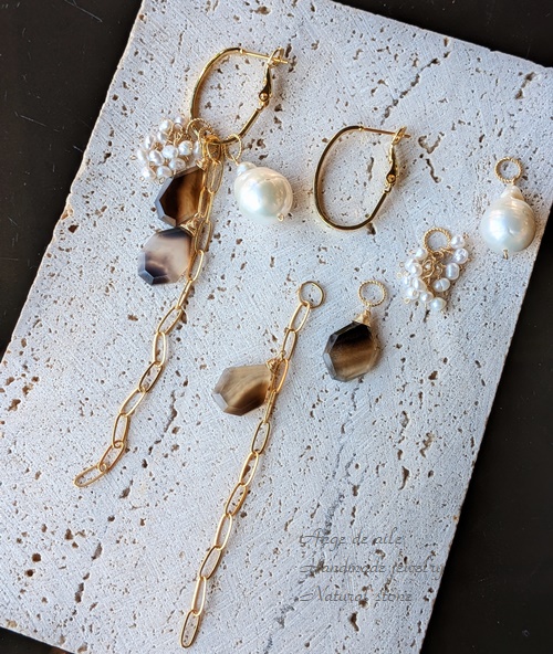バロックパール &バンデットアゲード 着せ替えフープピアス/イヤリング