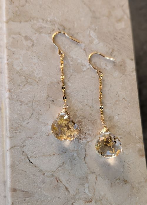 【14kgf】水晶 金色箔入りピアス/イヤリング